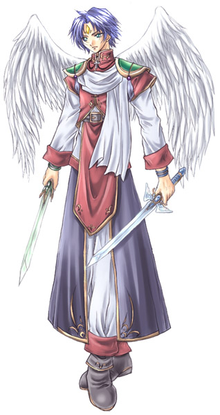 「…これとは…生まれて間もないときからのつきあいなんだ…。これは大地の剣…『大地の神』の力が宿っているといわれている…父から譲り受けたもの…僕にとっては、娘の次くらいに大切なものだな」
